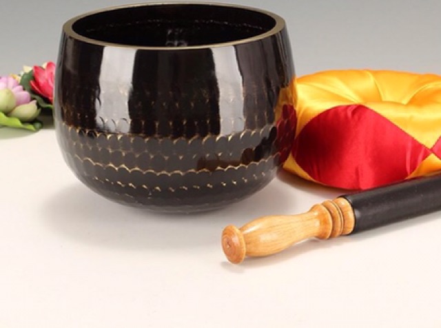 Chuông đồng đen vân lục giác • Kích thước: Bảng quy đổi kích thước ( inch = cm) Chuông 7 inch đường kính 17,5cm chuông 8 inch đường kính 19,5cm chuông 10 inch đường kính 25cm • Sản phẩm 1 bộ (1 bộ gồm chuông, đế và dùi bọc gấm sang trọng). Chuông Đài Loan có tiếng n