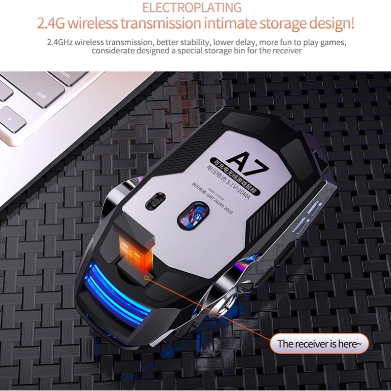 Chuột Không Dây Gaming YINOIAO A7 Không Âm Thanh Kết Nối Qua Đầu Thu USB 2.4G Pin Sạc Đèn LED Tự Động Đổi Màu Cao Cấp