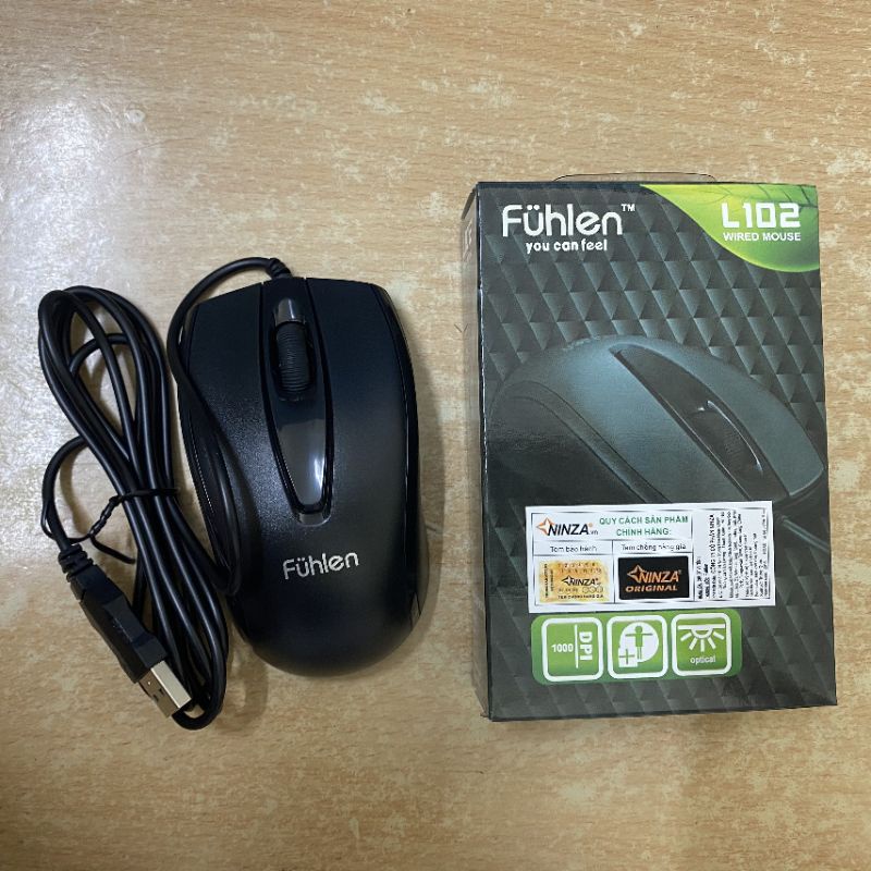 Tên sản phẩm: Fuhlen L102 Nhập Khẩu - Màu sắc: Đen - Cổng kết nối: USB - Kiểu kết nối: Có dây, quang - Độ nhạy: 1000dpi - Trọng lượng: 100g - Thời gian bảo hành: 1 tháng khi có lỗi của nhà sản xuất * Đặc điểm nổi bật: - Chuột Fuhlen L102 có thiết kế vừa tay, bám bề mặt, tạo cảm giác thoải mái khi sử dụng - Độ nhay cao: 1000dpi - Lượt sử dụng: 3 triệu lượt click (Theo thông tin của nhà sản xuất) - Giá thành hợp lý, chất lượng cao * Cách sử dụng: Cắm trực tiếp vào thiết bị thông qua cổng kết nối USB