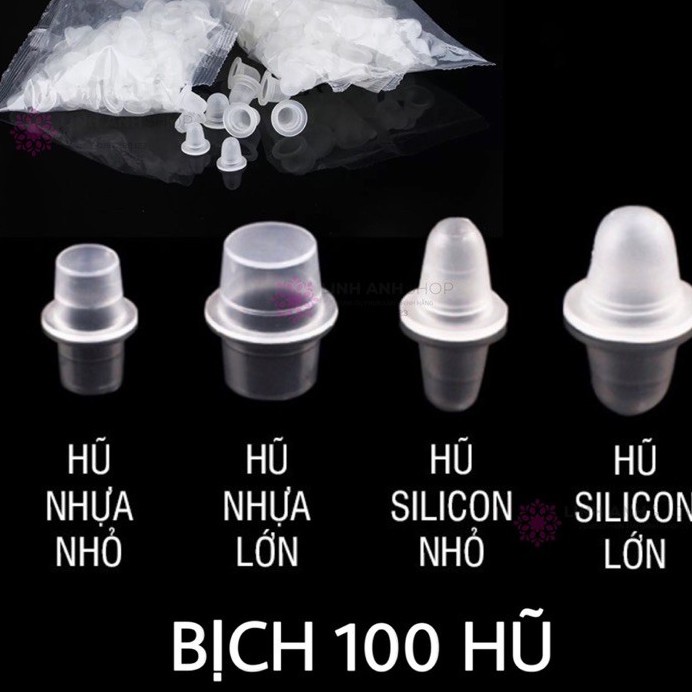 Chum đựng mực, hũ đựng mực xăm silicon và nhựa ( 100 cái ). + Là chum hũ đựng mực xăm chuyên dùng trong các spa ,thẩm mỹ viện + Chuyên dùng để đựng mực trong phun xăm ,tán bột ,điêu khắc chân mày ,đựng keo nối mi,sáp điêu khắc ... * Chất liêu gồm 2 loại : Hũ nhựa cứ