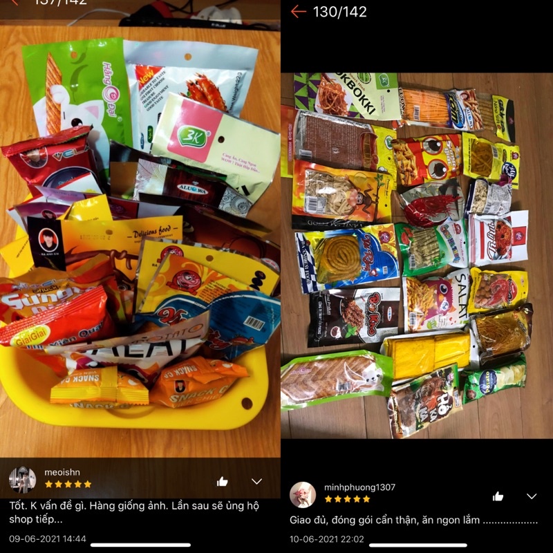 Sản phẩm: Combo Đồ Ăn Vặt chua cay Xin chào bạn đến với Tiệm Ăn Vặt nhà Thuỳ nha!! ✔Tất cả sản phẩm đều được mình tự chụp khách yên tâm đặt hàng nhaaaa!! ✔Đồ ăn đảm bảo, đa dạng, luôn có sẵn, sản phẩm được đóng gói trong thùng chắc chắn khách nhà mình không lo sản phẩm bị bẹp - vỡ. ✔️Tổng hợp các loại bánh kẹo đại lý, bách hoá - tổng hợp, quán ăn, căng-tin cổng trường. ✔️Phù hợp mọi lứa tuổi, sản phẩm luôn được nhập mới liên tục đảm bảo chất lượng. ✨ Ngày sản xuất được in trên bao bì ✨ Hạn sử dụng 6 tháng kể từ ngày sản xuất. ✨ Để nơi thoáng mát, tránh ánh nắng trực tiếp ✨ Mọi vấn đề thắc mắc khách nhắn tin trực tiếp cho mình sẽ xử lý giải đáp nhanh nhất nha!! ☎️ Điện thoại liên hệ : 0326133607 SỈ đồ ăn vặt #đồ_ăn_vặt #đồ_ăn_vặt_việt_nam #do_an_vat #ăn_vặt #set_đồ_ăn_vặt #đồ_ăn_vặt_cay #đồ_ăn_vặt_ngon #bánh #đồ_ăn_vặt_tuổi_thơ #đồ_ăn_vặt_giá_rẻ Địa chỉ: KCN An Khánh - Hoài Đức - Hà Nội