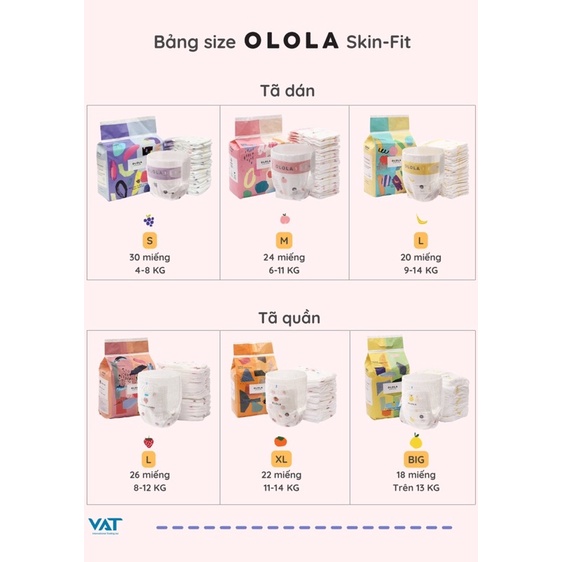 💐 Bỉm Olola nội địa Hàn Quốc có gì đặc biệt? 👉 SIÊU MỎNG - SIÊU MỀM MẠI - SIÊU THẤM HÚT - SIÊU CHỐNG TRÀN - THOÁNG KHÍ - ĐẦY ĐỦ CÁC CHỨNG CHỈ AN TOÀN & ĐẸP là tất cả những gì OLOLA có!!! BỈM HOA QUẢ #OLOLA - CÁI TÊN KO HỀ XA LẠ VỚI CÁC TÍN ĐỒ MÊ BỈM NỘI ĐỊA HÀN🍓🍑🍇 ⛔️ Dòng bỉm luxury với thiết kế bao bì nghệ thuật chắp vá gợi cảm và nghệ thuật chơi màu sắc. Thu hút từ cái nhìn đầu tiên và thật tiếc nếu ko khám phá chất lượng bỉm bên trong nó phải ko ba mẹ😌 ⛔️ #Olola được tạo ra với slogan 'Just like my baby’- cam kết đơn giản nhưng ‘rút ruột’ từ designer rằng tất cả các thiết kế của chiếc bỉm thân thương này sẽ giống như con ruột của họ vậy, sẽ được nâng niu và chăm chút cho từng chất liệu và đường nét! ⛔️ Bỉm Hoa Quả Olola cam đoan là dòng bỉm không thể thay thế được nếu mẹ đã cho con dùng thử 1 lần. Dòng bỉm siêu mỏng và cũng siêu thấm 👌🏻 Bờ mông xinh của con luôn được bảo vệ bởi #Olola - mọi tác nhân gây hăm nóng sẽ tránh xa bé😉 ⛔️ Siêu mỏng chỉ 0,19in - siêu mềm - siêu nhẹ không khiến vùng bụng hay đùi của bé yêu bị lằn, tạo sự thoải mái mọi lúc mọi nơi ⛔️ Công nghệ Air-through được áp dụng cả mặt trong và ngoài của bỉm không gây nóng bí, chống hăm hoàn hảo ⛔️ Siêu thấm hút - không thấm ngược - siêu chống tràn với công nghệ mới nhất Polymer nên các mẹ yên tâm dùng cho con cả đêm dài nhé ⛔️ Không có bất kì hoá chất gây hại nào, đã qua thử nghiệm hoá học CPSC Hoa Kỳ, DEHP, DBP, BBP và 29 loại thử nghiệm khác, an toàn tuyệt đối với bé yêu ⛔️ Không cần so sánh với bất cứ dòng bỉm mỏng dành cho mùa hè nào. Olola chắc chắn đem lại sự hài lòng cho ba mẹ nếu ba mẹ quyết thử 1 lần để con dùng. Thay đổi thôiiii, nếu mẹ là người ko ngại dành những gì tốt nhất cho con 🤗 ☀BẢNG SIZE BỈM OLOLA BỈM QUẦN OLOLA: 🍓L26 (8-12kg): 26 miếng 🍅XL22 (11-14kg): 22 miếng 🍋XXL18 (>13kg): 18 miếng BỈM DÁN OLOLA: 🍇 S30(4-8kg): 30 miếng 🍑 M24 (6-11kg): 24 miếng 🍌 L20 (9-14kg): 20 miếng ✅ THÔNG TIN HÀNG HÓA: ✔ Xuất xứ: Hàn Quốc ✔ HSD: 3 năm kể từ ngày sản xuất (xem trên bao bì sản phẩm) ✔ Nhập khẩu & phân phối: CÔNG TY CỔ PHẦN THƯƠNG MẠI QUỐC TẾ VAT ✔ Địa chỉ: Ngõ 112, Phường Trung Kính, Yên Hoà, Quận Cầu Giấy, Hà Nội