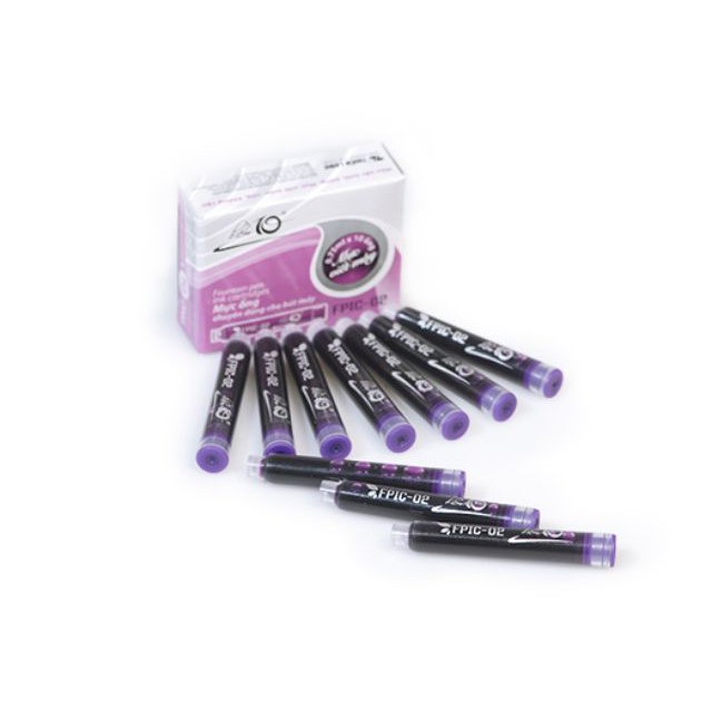 Được làm từ nhựa trong, mềm, dễ sử dụng Dễ dàng thay thế, cắm và sử dụng, tiện lợi Dung lượng 0.7 ml, viết được trên 10 trang giấy Có 3 màu mực tím, xanh, đen Hộp 10 Ống Mực Thiên Long FPIC-01, FPIC-02 được làm từ nhựa trong, mềm, dễ sử dụng, phù hợp cho các loại bút máy chuyên sử dụng ống mực như FTC-01, FTC-02 và một số loại bút chuyên sử dụng ống mực khác có trên thị trường. Ống mực dễ dàng thay thế, cắm là sử dụng, tiện lợi và không lo bị bẩn tay như bơm mực truyền thống. Dung lượng 0.7 ml, viết được trên 10 trang giấy đủ để học sinh sử dụng trong một ngày học. Các bạn muốn mua cho bút nào inbox cho shop để tư vấn ah