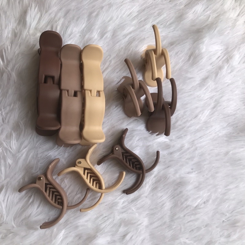 Combo 2 kẹp tóc càng cua chất liệu nhựa dẻo, 5 răng và 3 răng màu socola không gãy siêu bền