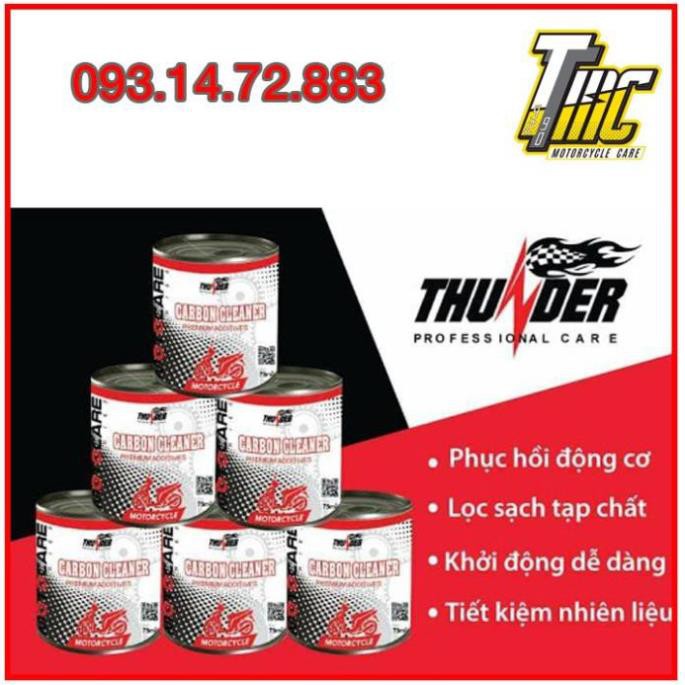 Tẩy CặnThunder Carbon Cleaner 75ml - Vệ Sinh Buồng Đốt Công dụng - Làm sạch hệ thống nhiên liệu và buồng đốt. - Giảm muội than bám trên đầu kim phun xăng, xu páp và piston. - Giúp phục hồi công suất động cơ. - Giúp động cơ khởi động dễ dàng và tăng tốc nhanh chóng. -