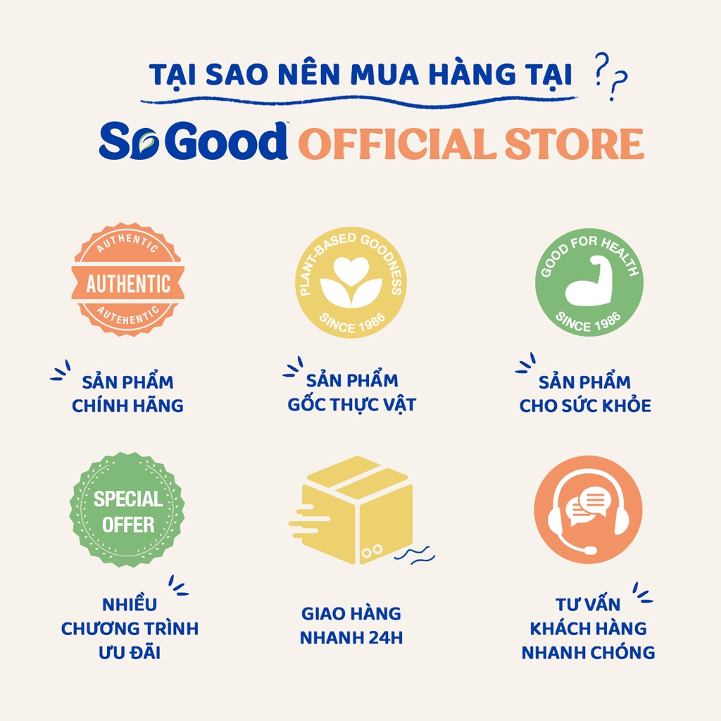 Combo 3 hộp sữa hạt hạnh nhân SO GOOD 1L ít đường bổ sung canxi và vitamin không gây tăng cân, phù hợp người ăn kiêng THÔNG TIN SẢN PHẨM - Thương hiệu: So Good - Xuất xứ: Úc - Quy cách đóng gói: 3 hộp 1L - Đối tượng sử dụng: + Người ăn kiêng đường + Người không dung nạp được lactose + Chế độ ăn kiêng, ăn chay + Đặc biệt phù hợp cho phụ nữ mang thai và sau sinh - Hạn sử dụng: 12 tháng kể từ NSX 📌 LƯU Ý: nắp hộp có sẵn khía, do đó lớp giấy bạc bên trong sẽ tự được khui khi mở nắp. THÀNH PHẦN Filtered water, cane sugar, almonds (2.5%), mineral (calcium), emulsifier (sunflower lecithin), natural flavour, salt, mineral salt (sodium bicarbonate), vegetable gum (gellan), antioxidant (ascorbic acid), vitamins (B12, B2, B1). CÔNG DỤNG - Hạnh nhân chứa nhiều vitamin E giúp bảo vệ làn da dưới tia cực tím và tóc trở nên mềm mượt hơn. - Ổn định đường huyết và giảm 30% tỉ lệ mắc bệnh tim. - Sản phẩm cung cấp nhiều chất khoáng ( Canxi, Kali, Phốt pho) & vitamin (B12, B2, E) giúp duy trì làn da khỏe đẹp, ngăn ngừa lão hóa, bệnh tiểu đường, tim mạch. - Bổ sung Vitamin B12 cho người ăn chay trường giúp tạo hồng cầu ngăn ngừa thiếu máu. - Thành phần có mức calo thấp (29kcal/100ml) ít hơn 60% so với sữa bò thông thường. Nên có thể làm thức uống bổ sung dinh dưỡng mà không gây tăng cân. ƯU ĐIỂM SẢN PHẨM - Hạnh nhân rất giàu protein, chất béo, carbohydrate, carotene, vitamin B, vitamin C, vitamin P, và canxi, phốt pho, sắt và chất dinh dưỡng khác giúp bổ não và xương - Hoạt chất Flayonoids có trong hạnh nhân có tác dụng chống lại quá trình lão hóa giúp bạn luôn tươi trẻ. - Là nguồn bổ sung canxi và vitamin dồi dào, calo thấp không cholesterol - Vị ngon thanh của sữa hạt đậu nành. - Khuyên dùng cho phái nữ, đặc biệt mẹ bầu & mẹ sau sinh - Sản phẩm không dùng : màu, hương vị nhân tạo, lactose, gluten, cholesterol, sữa động vật, kháng sinh và hóc môn tăng trưởng. - Sản xuất tại Úc từ nguyên liệu tốt nhất trồng tại Úc. HƯỚNG DẪN SỬ DỤNG Sữa đậu nành nguyên chất có thể sử dụng uống liền trực tiếp hoặc dùng làm nguyên liệu chế biến các loại đồ uống hạt, các món ăn, món súp...tùy theo khẩu vị của người dùng. HƯỚNG DẪN BẢO QUẢN Bảo quản ở nơi thoáng mát, tránh tiếp xúc với ánh nắng mặt trời. -----------------So Good----------------- #suatiettrung #suatuoiitbeo #suadaunanhcalothap #SoGood #thucphambosungchatdinhduong #thucphamchomebau #suadanhchomebau #suaankieng #suahanhnhan #suatuoiitduong