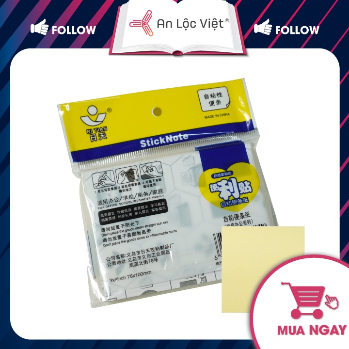 Giấy Note / Giấy Ghi Nhớ Vàng Kami Loại Đẹp Nhiều Kích Cỡ THÔNG TIN SẢN PHẨM - Kích thước : Note 3x2 : 76.2x50.8mm Note 3x3 : 76.2x76.2mm Note 3x4 : 76.2 101.6mm - Số lượng 100 tờ/xấp - Màu sắc: Vàng - Thương hiệu: Kami - Xuất xứ: Trung Quốc ĐẶC TÍNH SẢN PHẨM: - Dễ dàng ghi chép bất cứ ý tưởng để chia sẻ với người khác - Thời gian sử dụng lâu/ Dễ tẩy xóa/ Cho phép di chuyển vị trí - Bám chắc trên bề mặt mọi chất liệu khác nhau - Là vật dụng vô cùng cần thiết dành cho các bạn thích sử dụng giấy nhớ dùng để ghi chép. - Là loại giấy nhớ dán hình vuông, được thiết kế nhỏ gọn. - Phần phía trên giấy nhớ có lớp dính để dán lên vật dụng cần thiết. - Giấy nhớ được bọc trong túi cẩn thận. Giấy được sử dụng để ghi chép, ghi chú. HƯỚNG DẪN SỬ DỤNG - Dùng để ghi công việc, phân loại mức ưu tiên cho từng công việc dễ dàng. - Liệt kê, theo dõi công việc dễ dàng. - Ghi chú thông tin của khách hàng. - Để lại lời nhắn gửi cho người thân, đồng nghiệp khi có công việc. - Có thể mang theo bên mình bất cứ lúc nào vì sự tiện dụng,nhỏ gọn. HƯỚNG DẪN BẢO QUẢN - Nhiệt độ: 10 ~ 55º C, Độ ẩm: 55 ~ 95% RH - Tránh để giấy những nơi ẩm thấp hay nơi gần nguồn nước. - Không nên để giấy ở nơi có nguồn nhiệt quá cao vì có thể gây biến dạng giấy GIẤY IN AN LỘC VIỆT - MIỀN NAM CAM KẾT: - Đổi hàng hoặc hoàn tiền 100% cho quý khách nếu hàng giao không đúng - Hỗ trợ ngay khi quý khách liên hệ - Quý khách khi nhận được sản phẩm nếu có bất kỳ thắc mắc, vui lòng inbox để được shop giải đáp trước khi đánh giá sản phẩm. AN LỘC VIỆT là đơn vị chuyên phân phối giấy in, văn phòng phẩm, mực in văn phòng các loại và khắc dấu hàng đầu tại Việt Nam.. AN LỘC VIỆT cảm ơn quý khách đã sử dụng sản phẩm <3 <3 <3