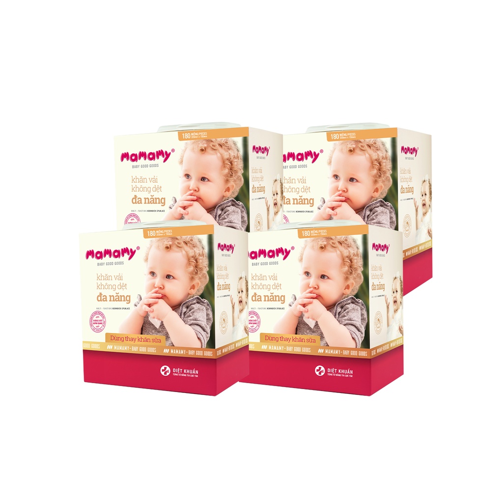 Combo 4 Khăn khô đa năng diệt khuẩn tia cực tím Mamamy Dùng thay khăn sữa an toàn cho bé 180 tờ