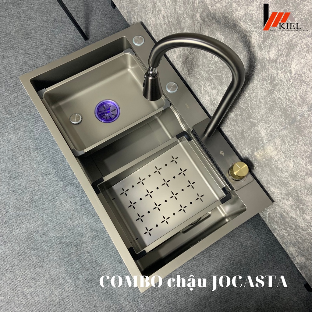 COMBO chậu vòi 1 hố lớn kiểu dáng mới lạ hiện đại: LƯU Ý: CÁC BẠN ĐỌC KỸ PHÂN LOẠI TỪNG CHẬU RỒI HÃY ĐẶT HÀNG TRÁNH BỊ NHẦM LẪN, HOẶC CÓ THỂ LH NHÂN VIÊN BÊN MÌNH ĐỂ ĐƯỢC TƯ VẤN KỸ HƠN. PHÂN LOẠI: CHẬU RỬA BÁT KÈM VÒI: - Xám CD3.5li,Vòi đồng: Combo chậu Jocasta có CÀ