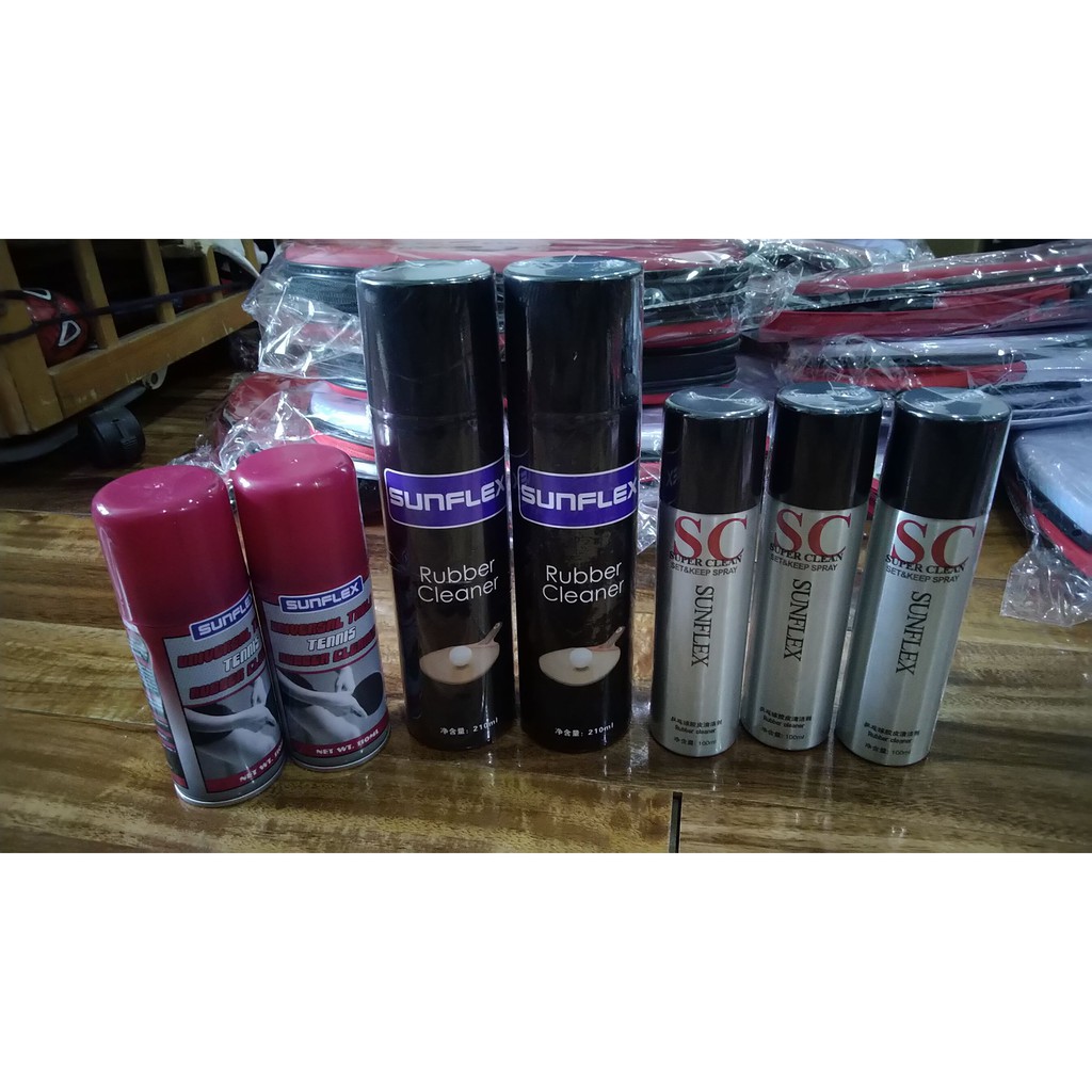 Combo chai xịt vệ sinh mặt vợt Sunflex và mút lau mặt vợt E-lian