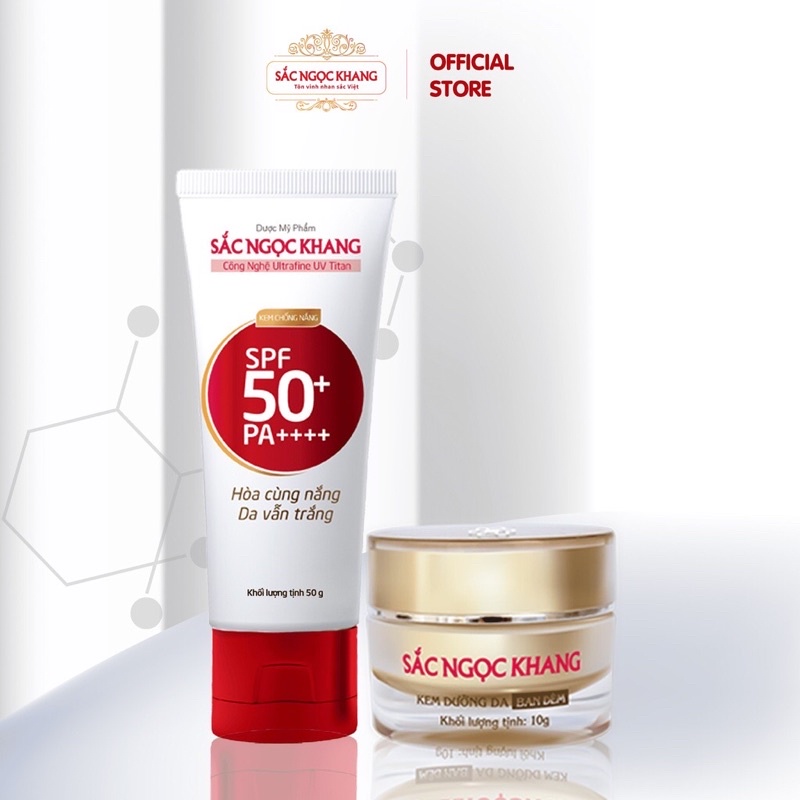 Combo dưỡng da ngày và đêm với kem dưỡng da ban đêm Sắc Ngọc Khang 10g + Kem chống nắng Sắc Ngọc Khang SPF 50 PA++++