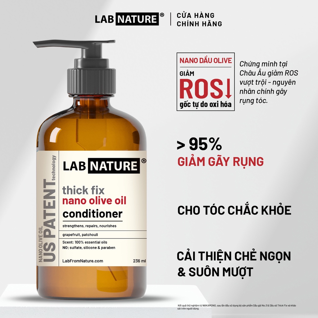 Combo Dầu gội và Dầu xả không Silicone Ngăn rụng tóc Lab Nature No.3 - công nghệ Nano Dầu Olive