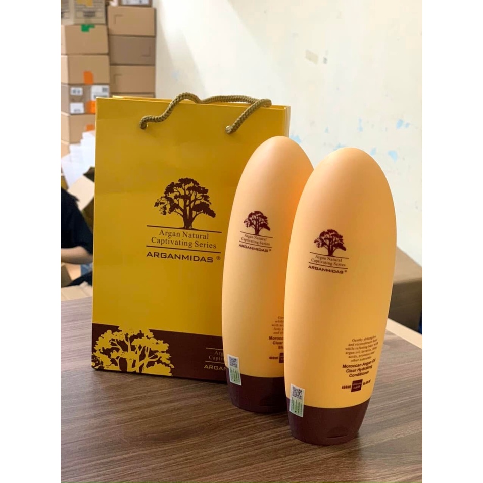 Combo dầu gội và dầu xả tinh dầu Argan - ARGANMIDAS CANADA siêu mượt chai 450ml tặng kèm tinh dầu dưỡng tóc