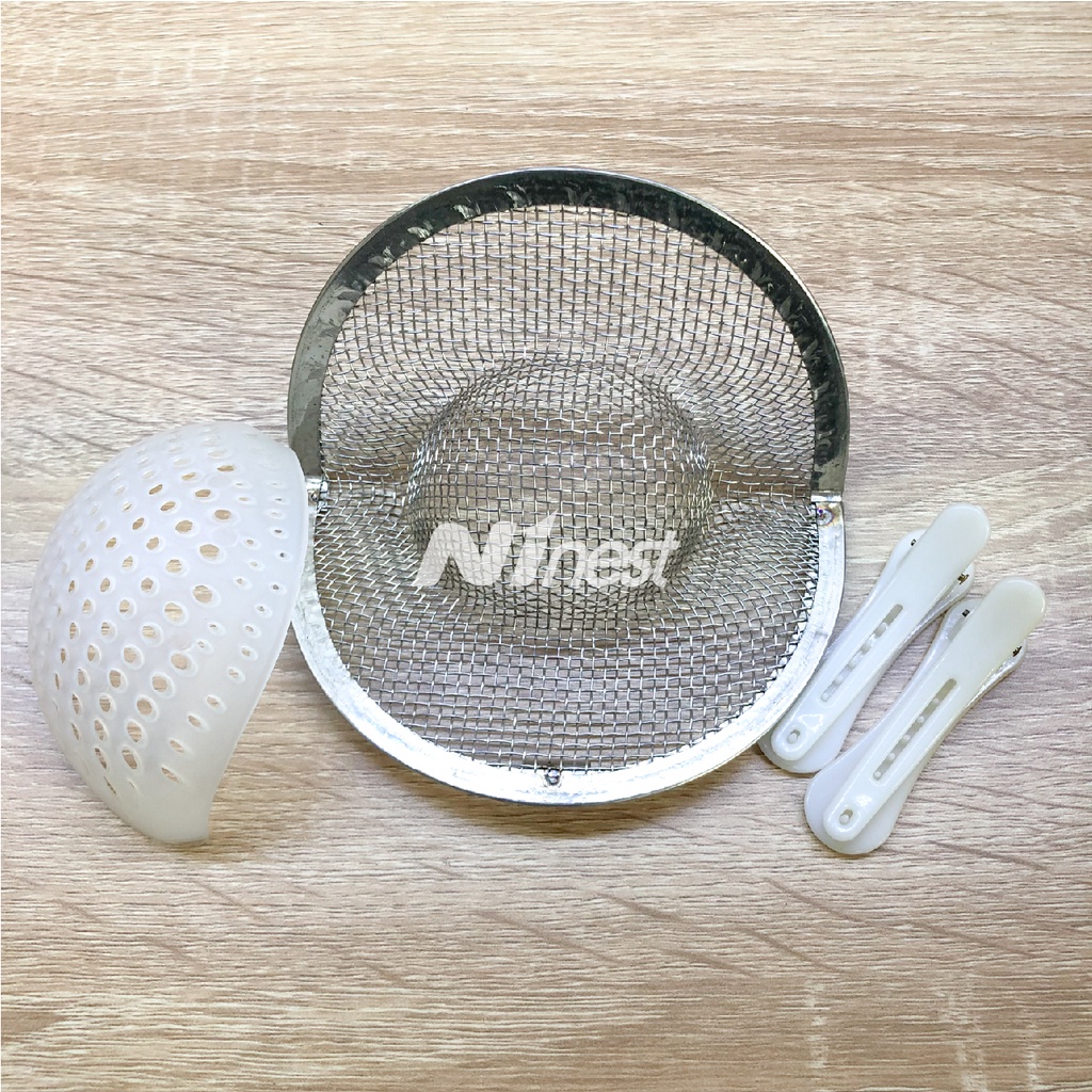 Combo khuôn đắp yến, định hình tổ kèm 2 kẹp nhựa - Bộ khuôn tinh chế lưới inox vành tròn lớn, khuôn nhựa chiếc lá I-02