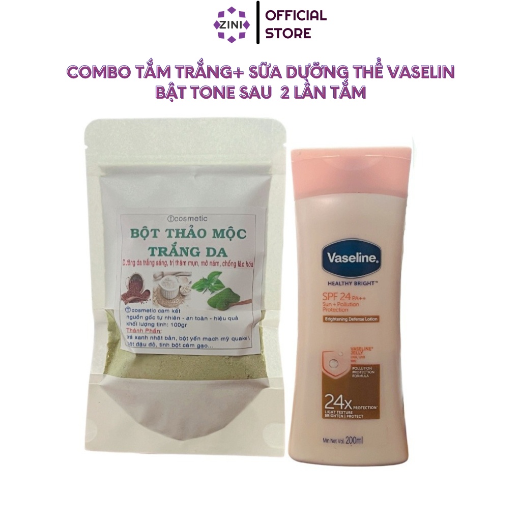 Combo sữa dưỡng thể vaselin và tắm trắng thảo mộc trắng da mờ thâm cho body chính hãng Zini Store