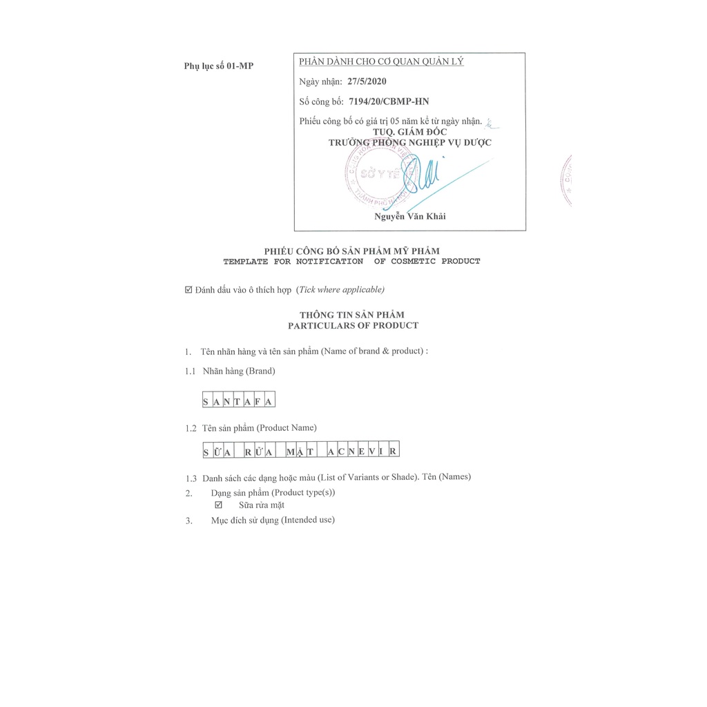 Combo Sữa Rửa Mặt Và Kem Hỗ Trợ Ngừa Mụn Cám, Mụn Đầu Đen Acnevir Santafa Tuýp 100g và 10g