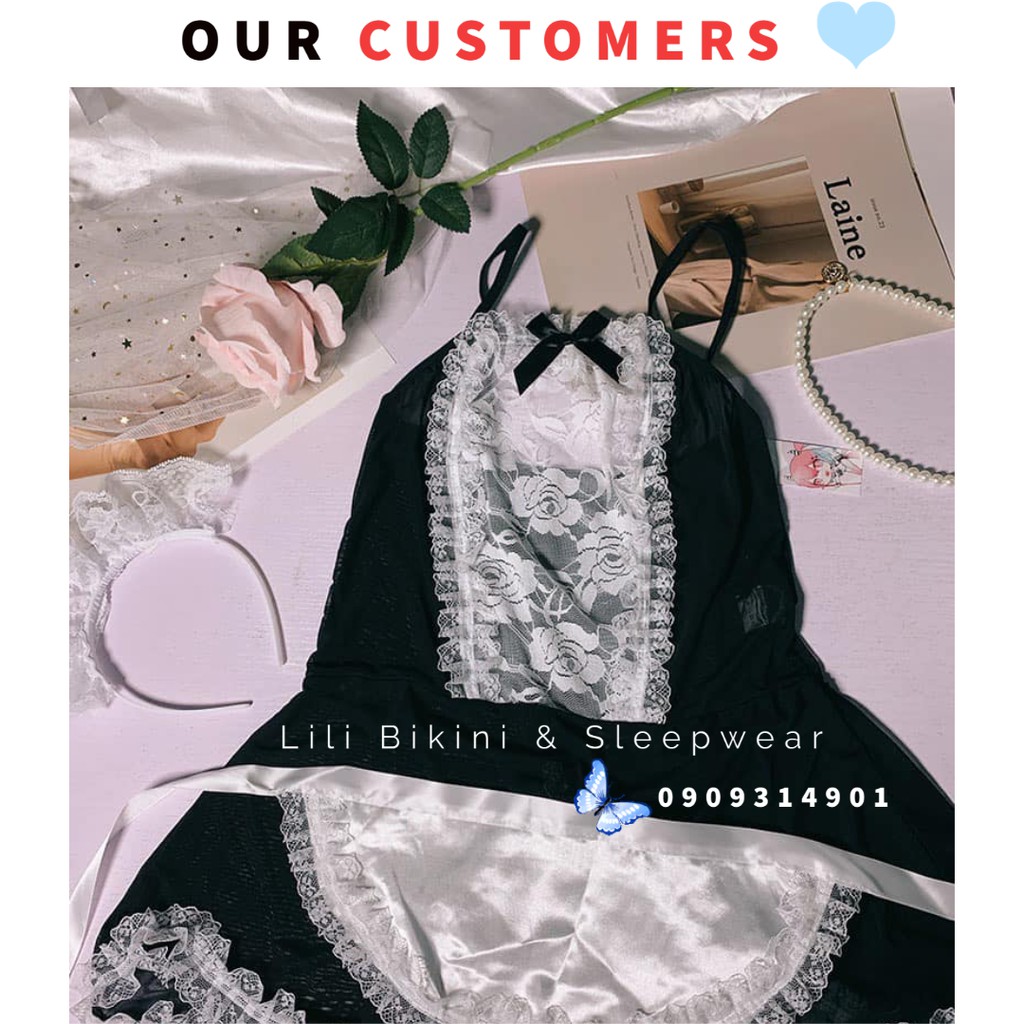 Set đồ ngủ nữ kiểu váy đầm 2 dây cosplay nàng người hầu gái sexy DK09 phối ren gợi cảm quyến rũ