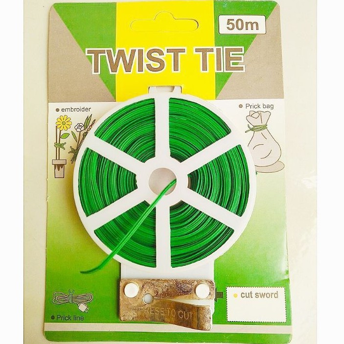 Dây Buộc Kẽm Bọc Nhựa Có Dao Cắt cuộn 50m - Đa Năng Dùng Buộc Lan, Buộc Cành Cây