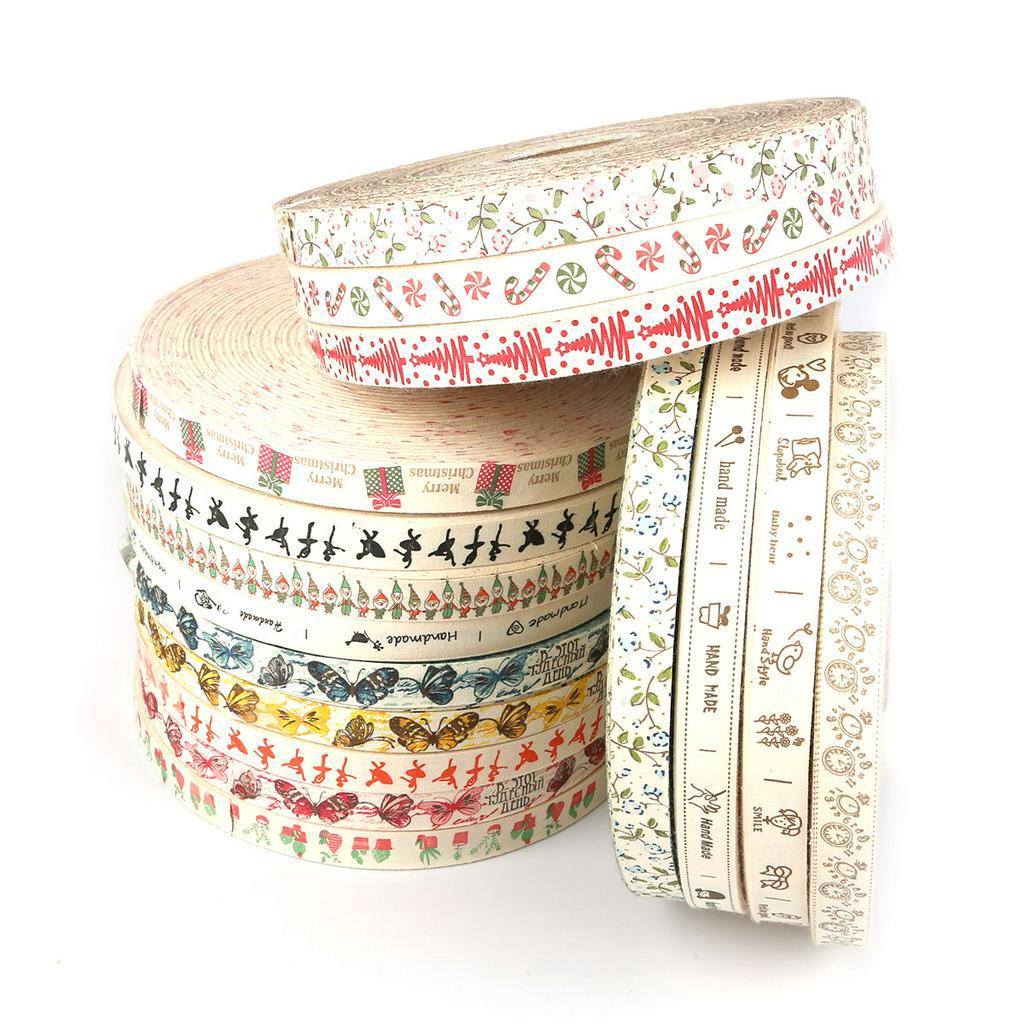 Cuộn dây ruy băng rộng 1.5cm chất liệu cotton in họa tiết hoạt hình xinh xắn
