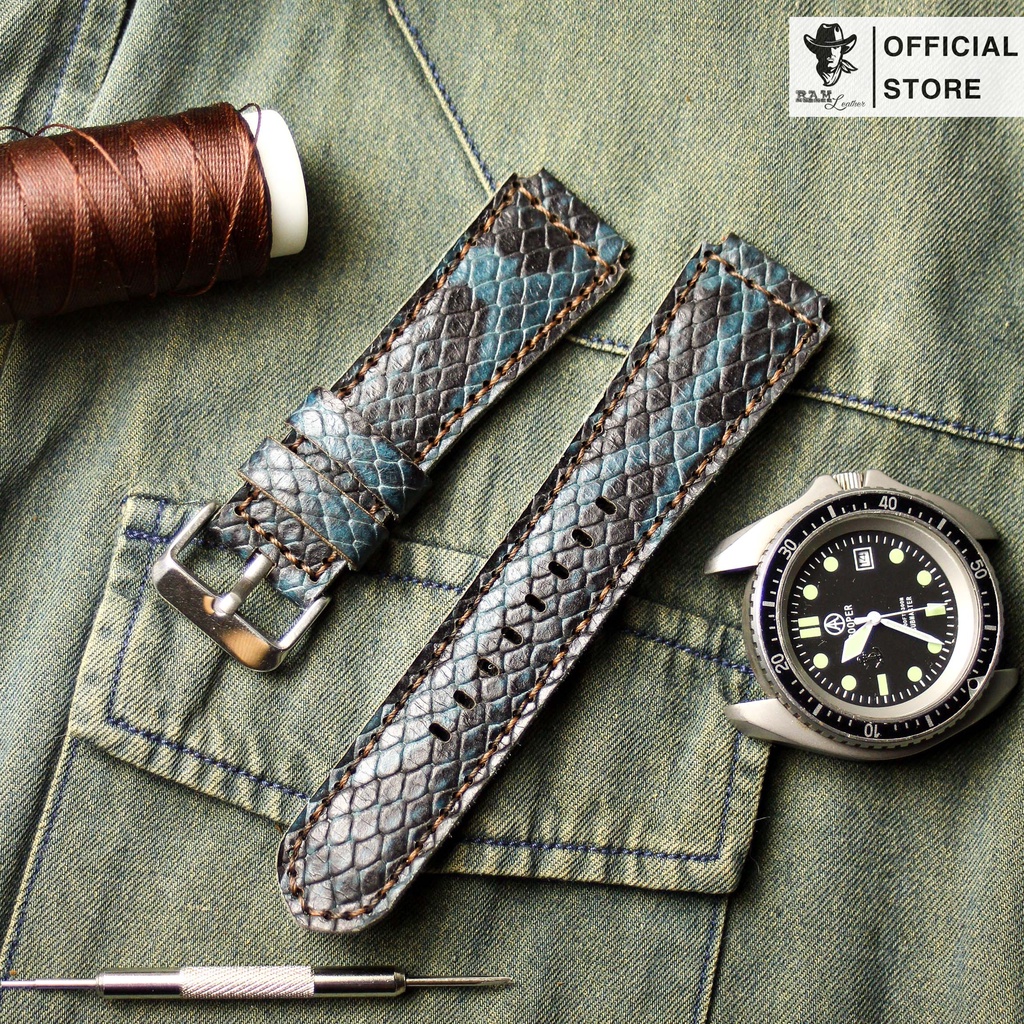 Dây Đồng Hồ Da Bò Thật Bền Đẹp Handmade Xanh Navy - Ram 1998 Tặng Khóa, Chốt, Cây Thay Dây