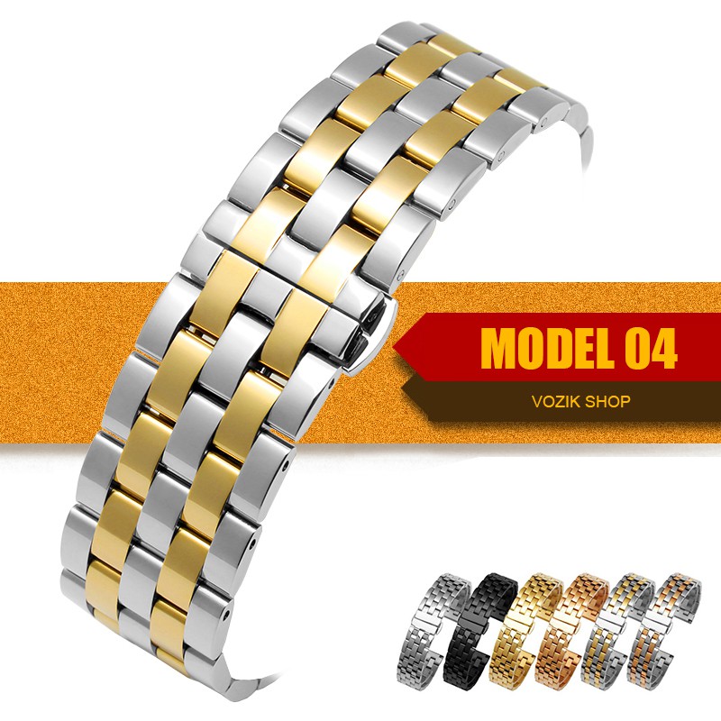 Hãng sản xuất: Strap&Co Chất liệu: Thép không gỉ 304 Cỡ dây: 18mm 20mm 22mm Màu sắc: Trắng / Vàng / Đen / Demi trắng vàng Công nghệ: gia công chuẩn Châu Âu ---------------------------- Bộ sản phẩm đầy đủ: Dụng cụ tháo chốt dây + Dụng cụ tháo mắt dây + bộ chốt đầu dây