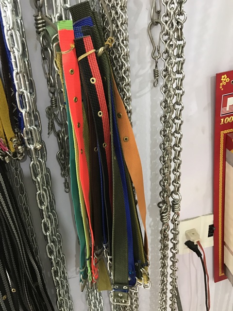 Chất vải dù đan , loại nhỏ có chuông ✔️Có 4 kích cỡ loại vải dù _Mini : 6k _Vừa mỏng :8k _Vừa dày ( to hơn 1 xíu ) : 10k _To: 18k dày đẹpp ✔️loại inox có 2 loại ( loại này phù hợp với các chó to , vì dây đai vải chó hay giựt đứt nên chắc chắn loại inox này dùng sẽ