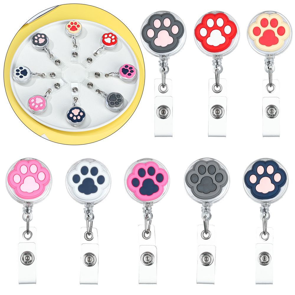 Dây đeo kẹp thẻ ID bằng PVC có thể thu gọn họa tiết chân mèo nhiều màu sắc dễ thương