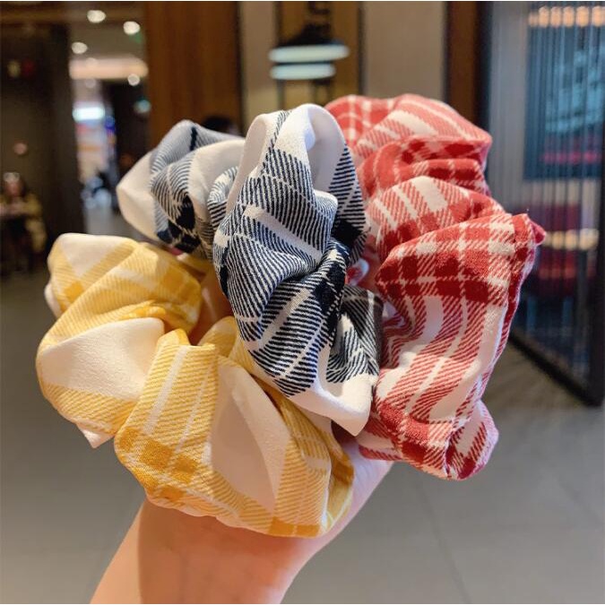Dây buộc tóc, Cột tóc Scrunchies Co Giãn Họa Tiết Vải Caro Thời Trang Cho Nữ