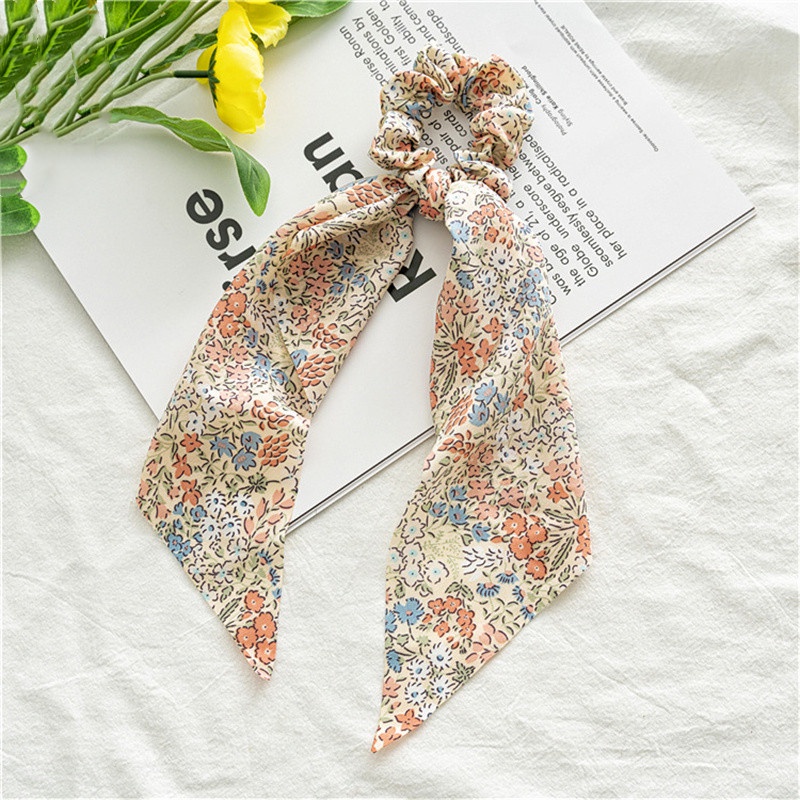 Dây Buộc Tóc Cao Su Vải Voan In Hoa Thắt Nút Dễ Phối Đồ Cho Nữ