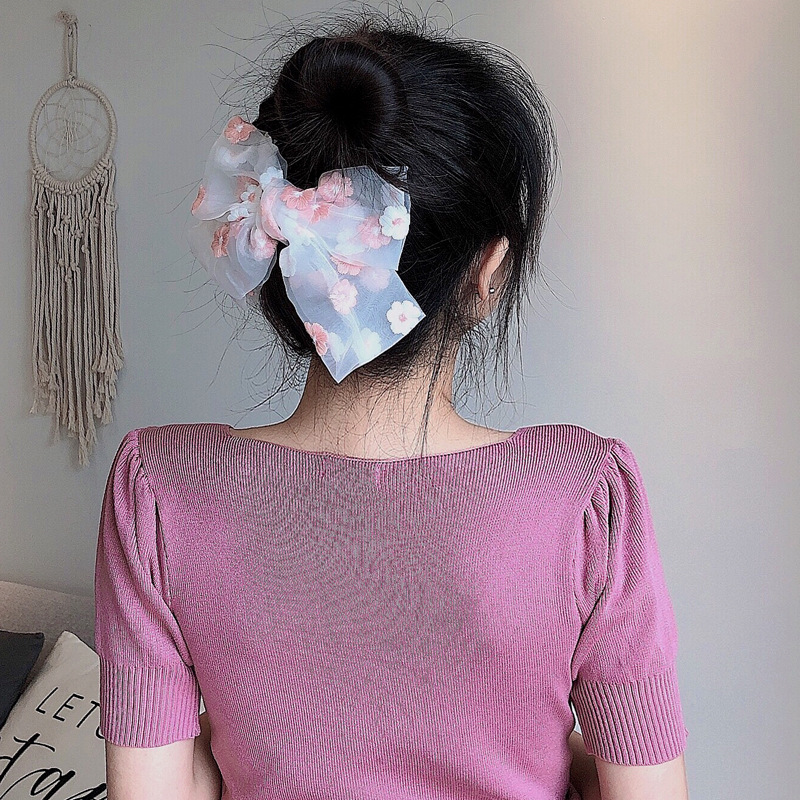 Dây buộc tóc hình nơ họa tiết hoa cúc nhỏ xinh xắn thời trang Hàn Quốc