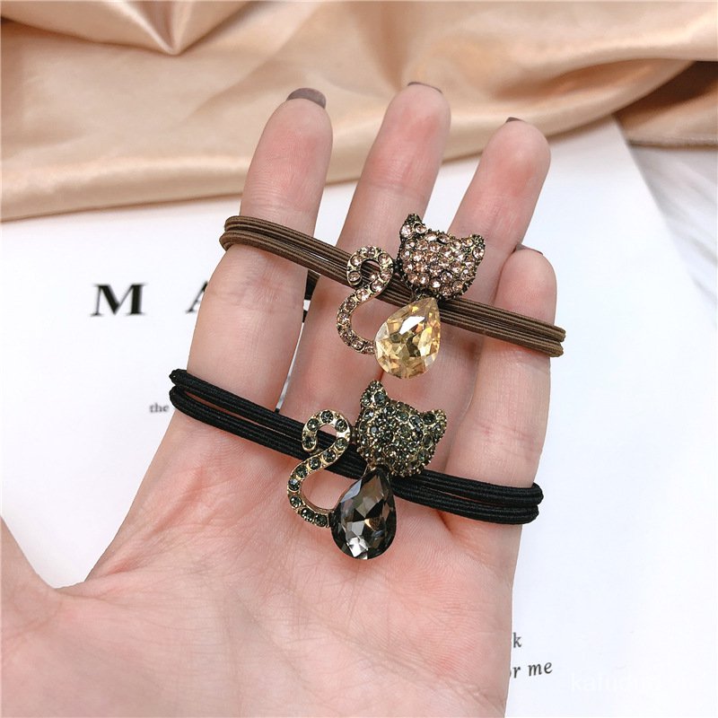 Dây buộc tóc họa tiết cô mèo đính đá phong cách Hàn Quốc nữ tính