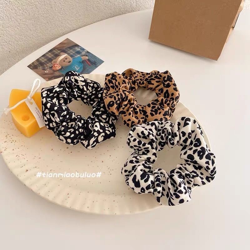 Dây buộc tóc họa tiết da báo/chấm bi trắng/đen thời trang Hàn Quốc sành điệu cho nữ