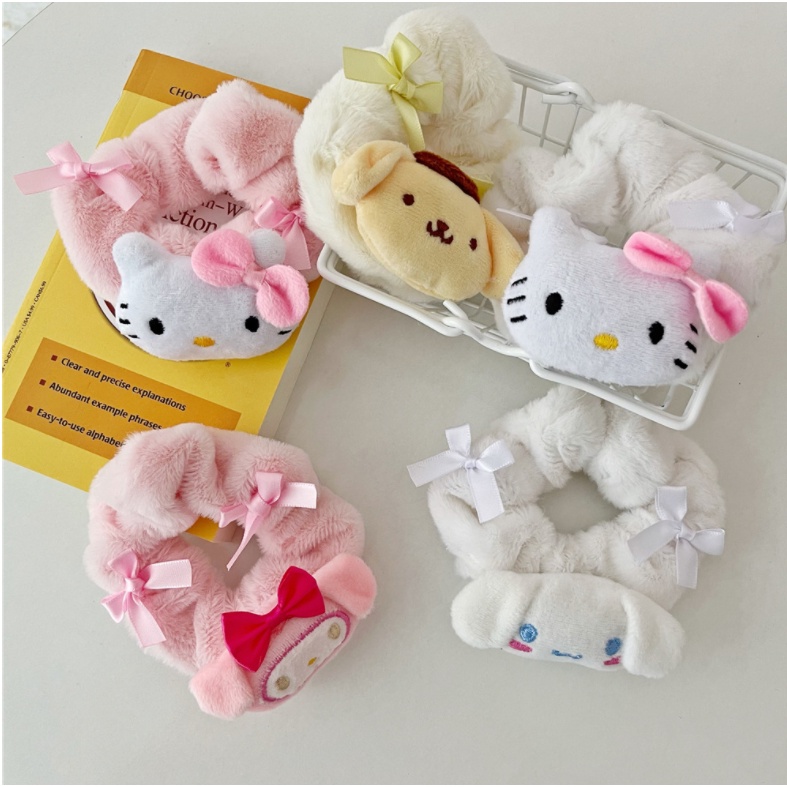Dây buộc tóc XIAODUOJIAJU vải lông họa tiết hello kitty dễ thương thời trang cho nữ