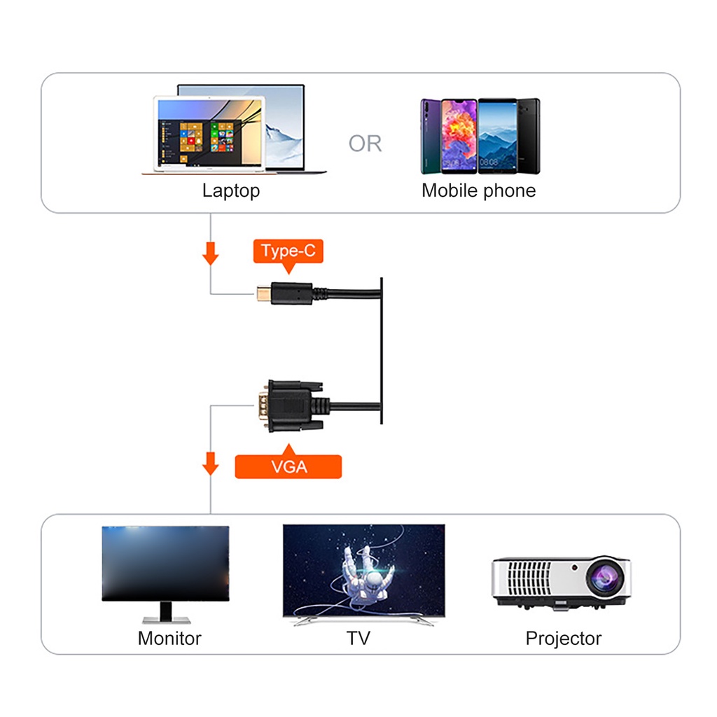 Dây cáp chuyển đổi cổng USB 3.1 Type-C sang VGA 1080P cho màn hình máy tính