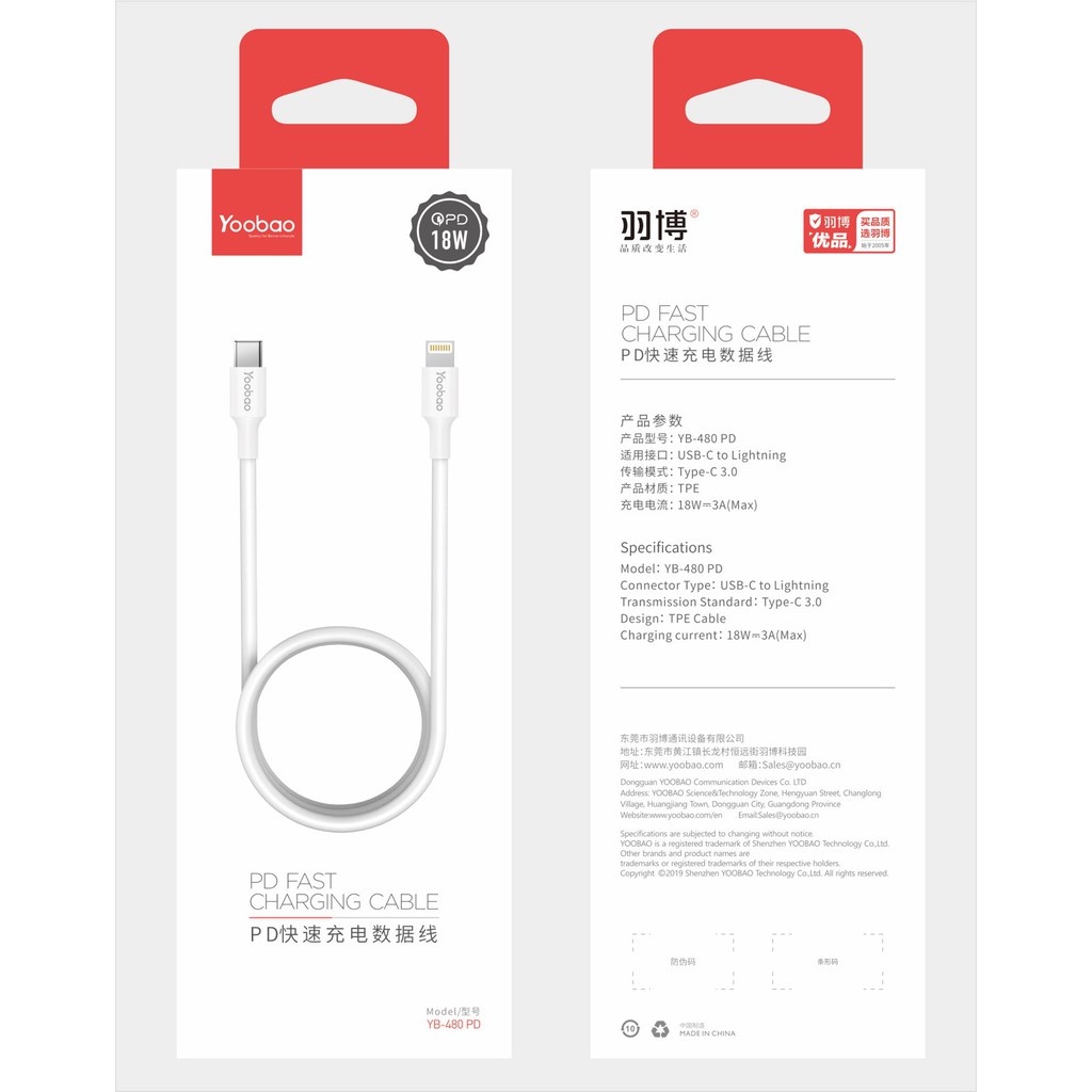 Dây Cáp Sạc Nhanh Yoobao YB-480PD Type-C to Lightning- PD 20w - Hàng Chính Hãng - Bảo Hành 12 tháng - Lỗi 1 Đổi 1