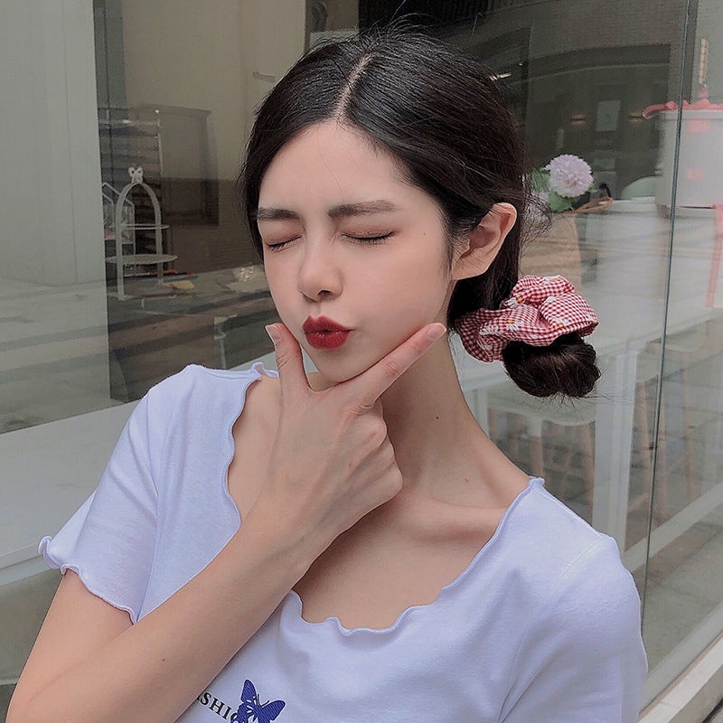 Dây Cột Tóc Cao Su Họa Tiết Caro / Chú Heo Dễ Thương Phong Cách Hàn Quốc Cho Nữ