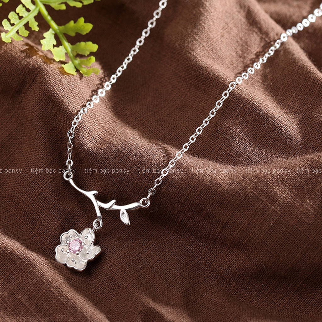 Dây chuyền bạc nữ hoa anh đào Sakura, vòng cổ bạc 925 PANSY phong cách Nhật Bản