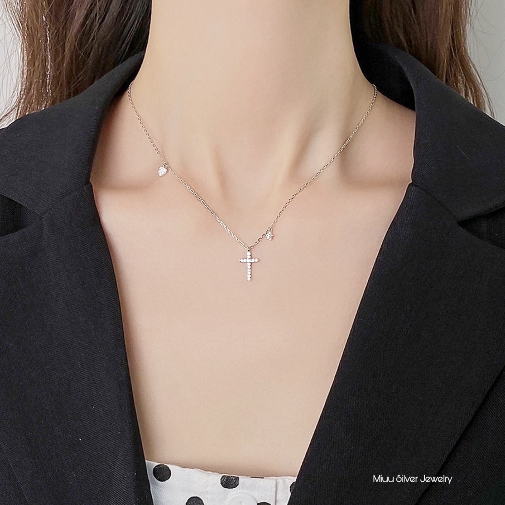Dây chuyền bạc nữ mặt thập giá Miuu Silver, vòng cổ nữ T - Cross với charm trái tim, ngôi sao