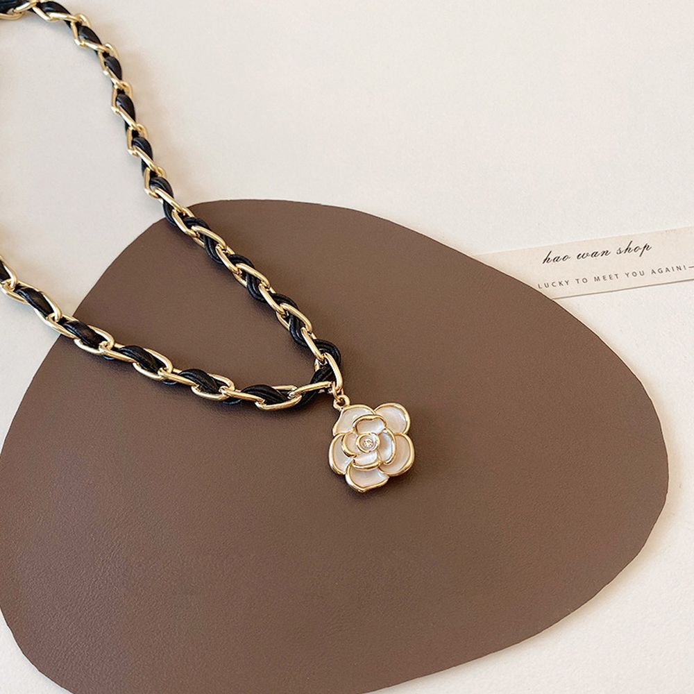 Dây chuyền choker da PU mặt hoa trà phong cách cổ điển thời trang dành cho nữ