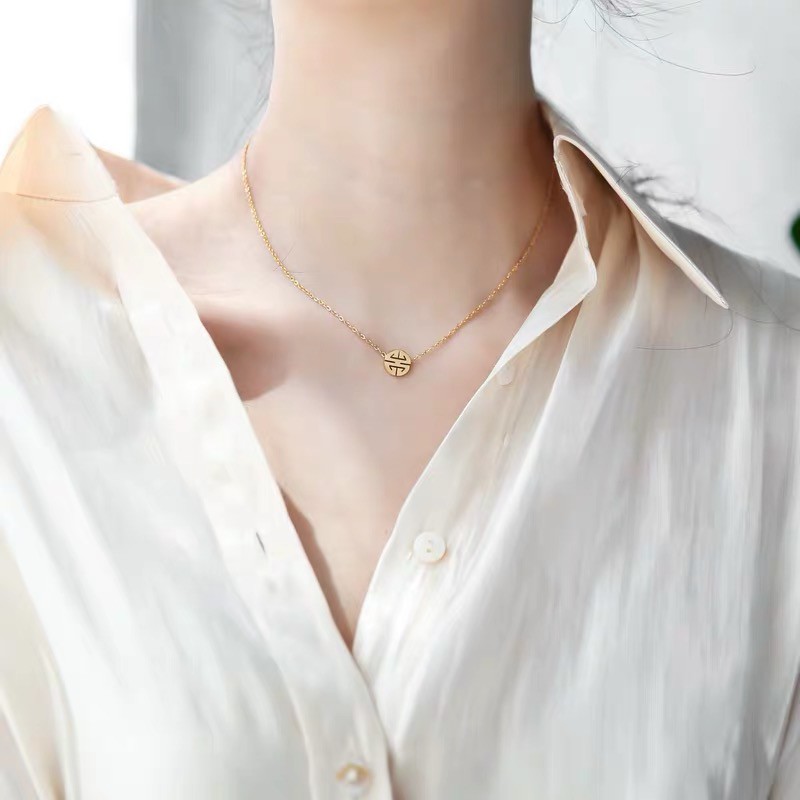 Dây chuyền dáng ngắn nhỏ bằng thép titan mạ vàng hồng 18K thời trang cá tính cho nữ