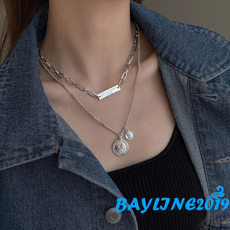 Dây Chuyền Hai Lớp Mặt Vuông In Chữ Tiếng Anh Phong Cách hip hop Đường Phố Cho Bé Trai Gái