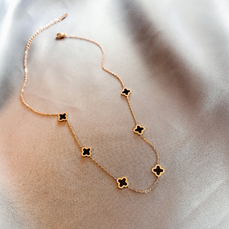 Dây Chuyền Thép Titan Mạ Vàng 18k Phối Mặt Hình Cỏ Bốn Lá Thời Trang Cho Nữ