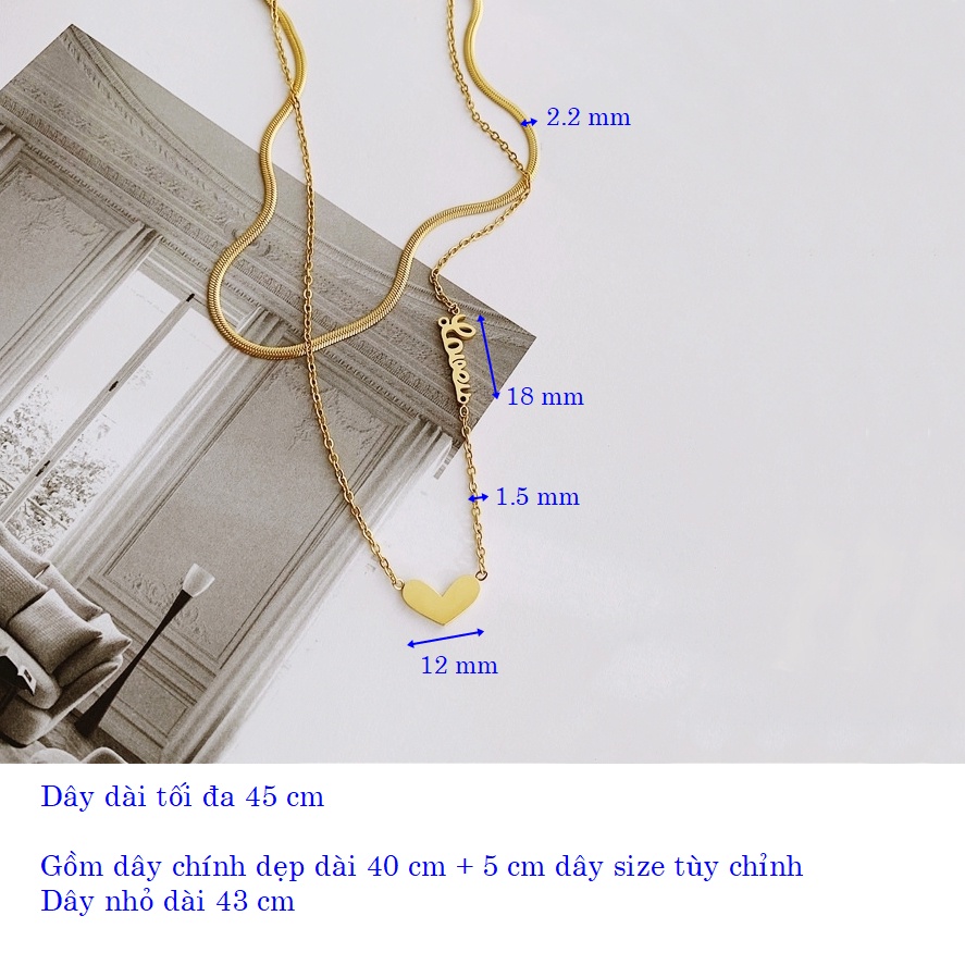 Dây chuyền titan nữ 2 lớp mặt trái tim chữ Love cá tính