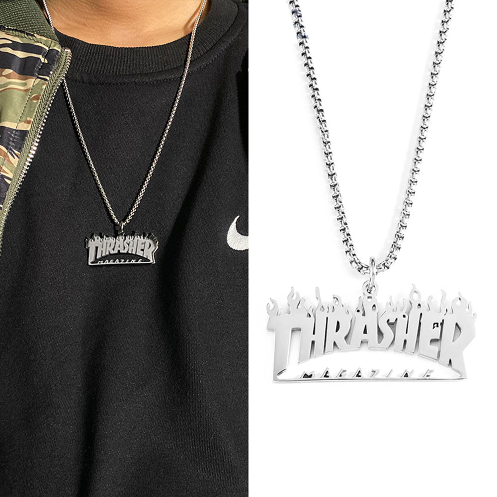 Dây chuyền unisex thép không gỉ titan mặt hình chữ nổi lửa phong cách rock hip hop phong cách Hàn Quốc hợp thời trang