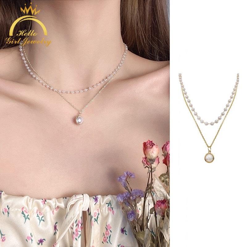 Dây Chuyền Vòng Cổ Đính Ngọc Nhân Tạo 2 Lớp hàn quốc xinh xắn - PK0039