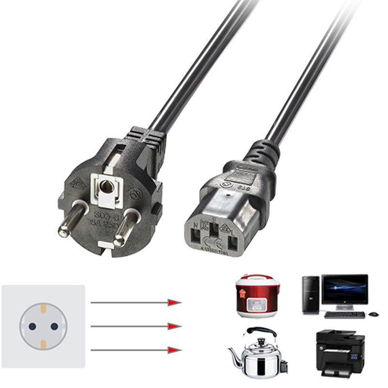 Dây nguồn 3 chấu C13 EU plug 3x0.75mm chịu tải 1500W - Cáp nguồn cho PC Nồi cơm Ấm điện Loa 1M đến 3M
