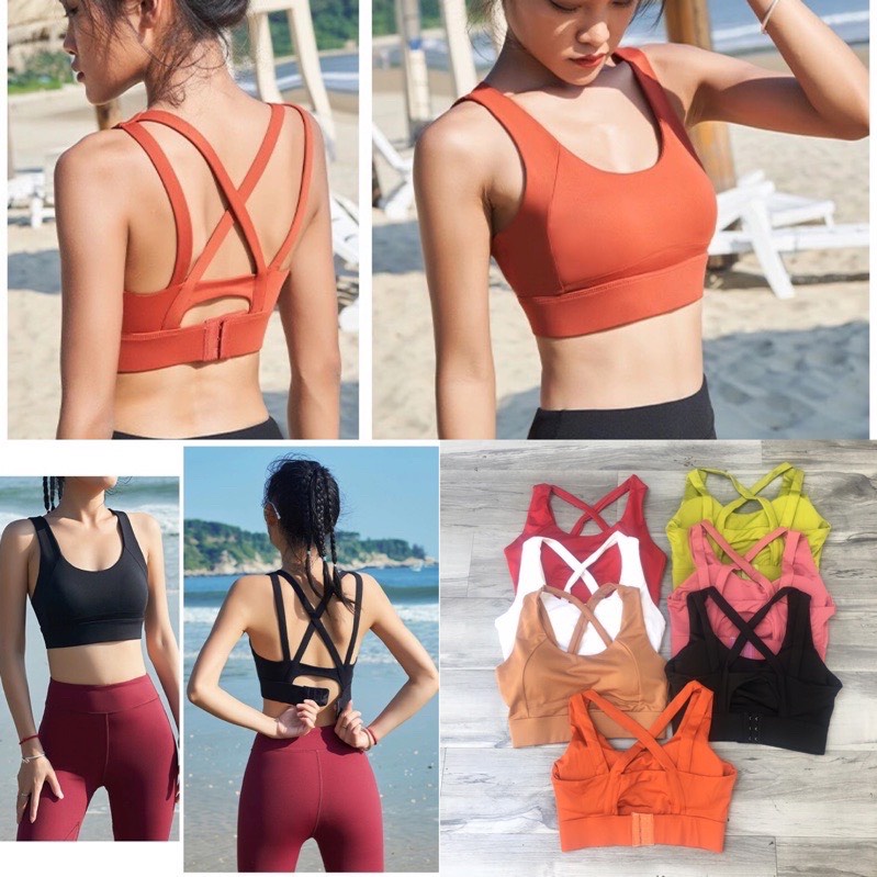 Áo bra đắp chéo phối dây lưng kèm mút ngực tập gym yoga nữ có big size