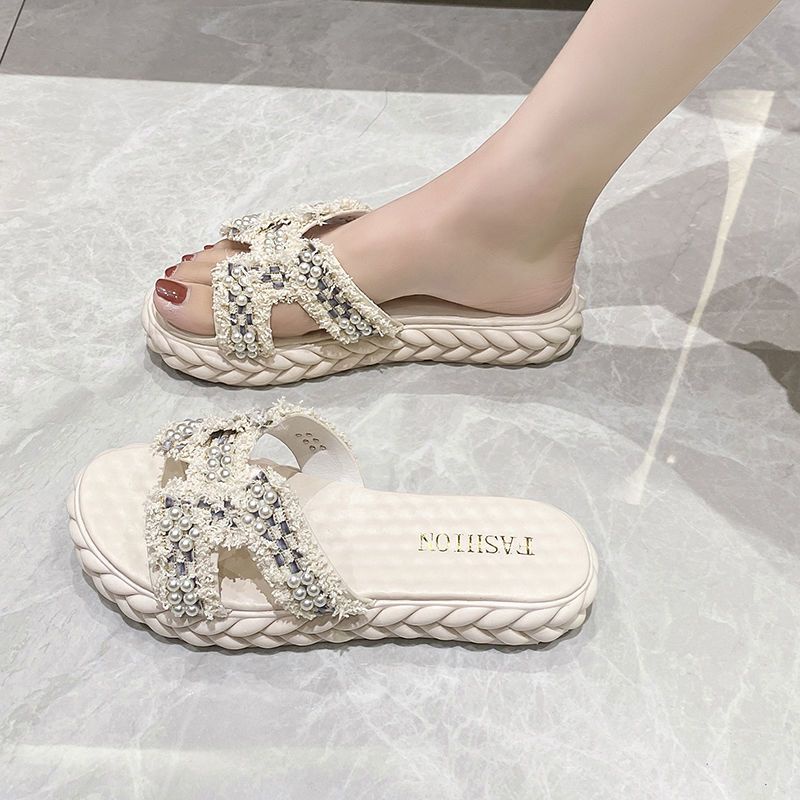 Dép Đế Dày Mềm Đính Ngọc Trai Thời Trang Dành Cho Nữ
