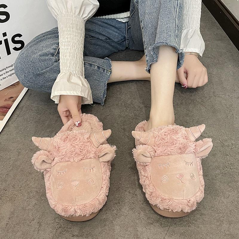 Dép đi trong nhà chất liệu len lông cừu dày dặn thời trang thu đông dễ thương cho nữ