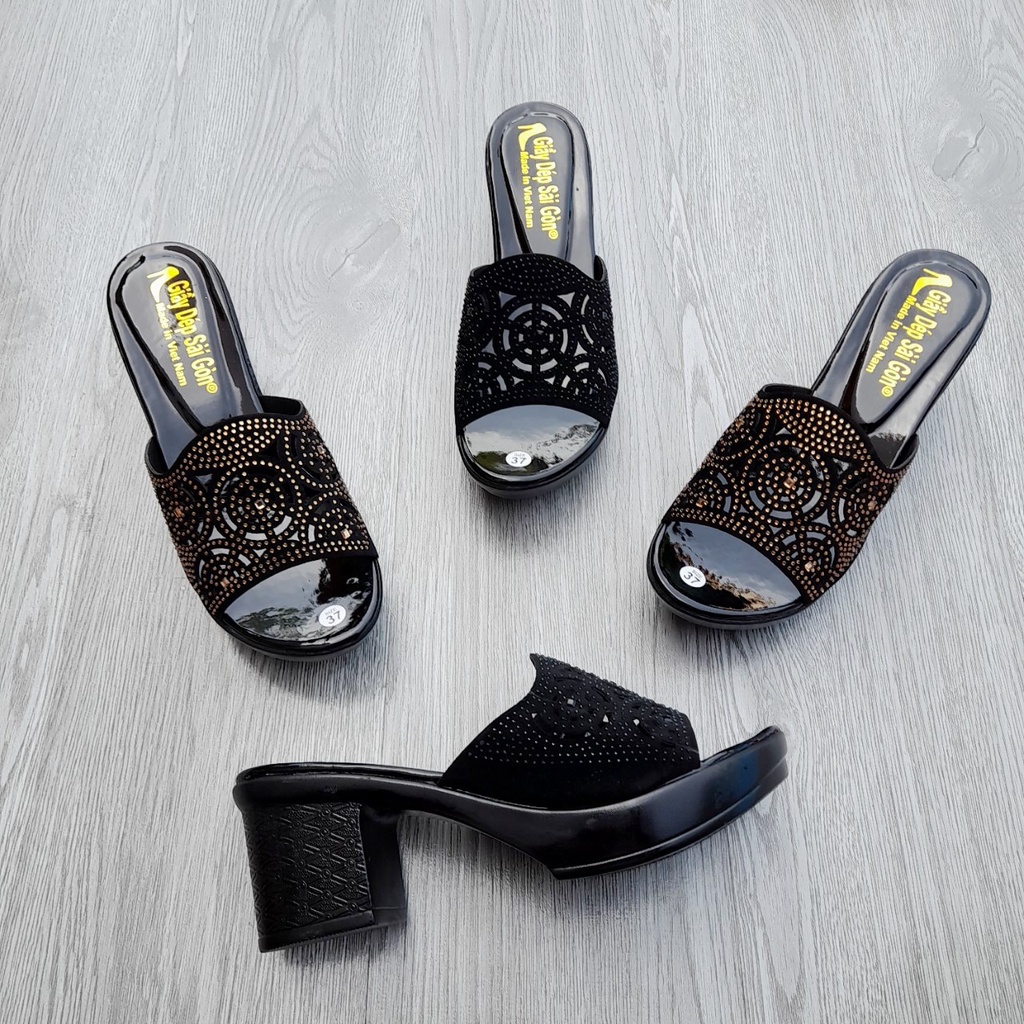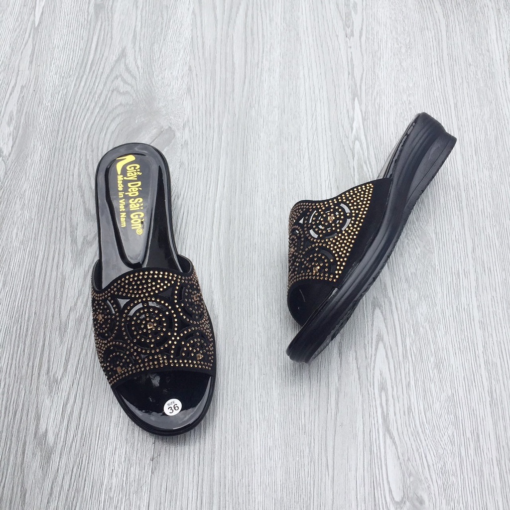 Dép 3p đính đá dọc sang trọng - Dép nữ trung niên nhẹ, êm cho mẹ, cho bà